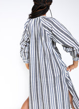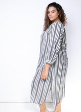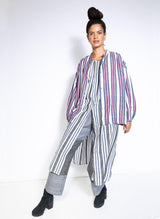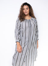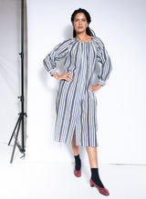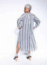 Your favorite wear-anywhere dress is back—and now more versatile than ever. Crafted from a light handloom woven cotton, this striped Caz Dress is both elegant and easy. The gathered neckline and sleeves provide a subtle feminine flair, while side slits offer ultimate movability. Plus, we’ve updated the Caz with top-to-bottom buttons for even more styling options—wear it alone, over pants, or fully unbuttoned as a light jacket. A shape-shifting piece for all seasons.