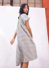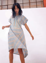 A celebration of craftsmanship and fine detailing, the Leta Dress is the picture of easy elegance. Features include geometric cut seams, stripe play, and an asymmetrical hem that gives way to a flattering and flowy silhouette. Crafted from a naturally dyed, handloom woven cotton that’s soft, breathable, and easy for everyday wear.