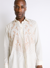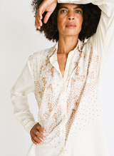 The perfect button-down does exist. Easy to dress up or down, this unisex shirt was designed to wear all day, every day. Structured yet relaxed, it features a collared neckline, edge stitching, and a front patch pocket. In a chic natural colorway, handloom woven from naturally dyed organic cotton and hand-embroidered with naturally dyed yarn.