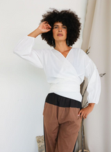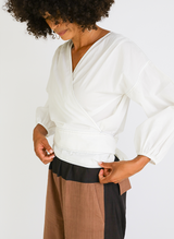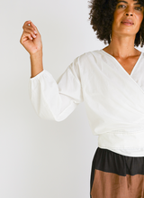 Paige Wrap Top, white poplin
