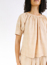 The Tanya Top is all about beauty and ease. Rich with delicate details and unique touches: a high-low hem, ladder trim at the cut seams, gathering at the neckline, and a back keyhole button closure.