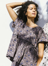 We like to think of the Zoe Top as an elevated take on our favorite loungey tee—and just as comfortable. The subtly ruffled bottom adds volume and a delicate flowiness, while keeping things loose and easy. Now in organic cotton, hand block printed with our mocha swirls.