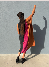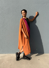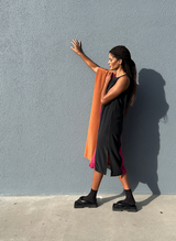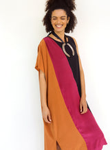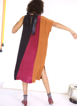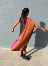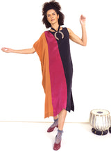 Made of luxe, naturally dyed silk, the Thanh Dress is an asymmetric beauty with a mod flair—sleeveless on one side, with a dramatic color-blocked drape on the other. Features side slits, midi length, and a flowy fit. Our favorite party dress.