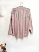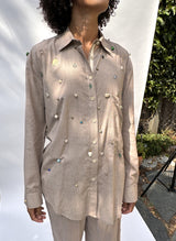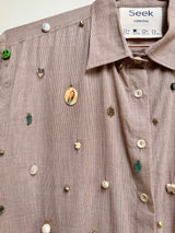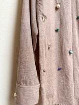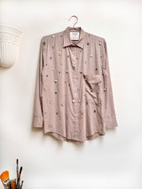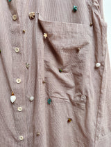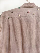 This perfect unisex button down shirt was designed for all. A classical staple with an oversized front pocket and looser fit. This one has been beaded with an array of different charms imbued with a lot of spirit. My hope is this shirt brings you protection and good luck.
